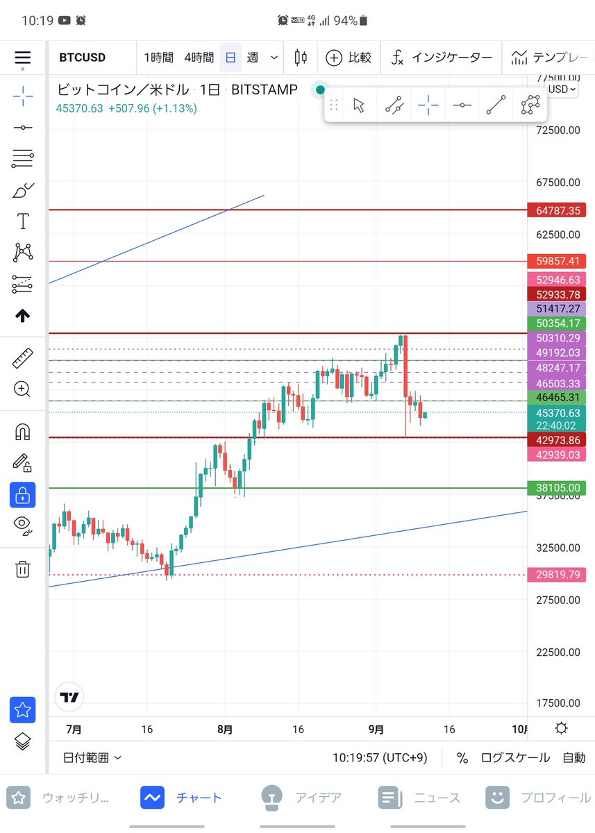 クリプトマン Bitcopyfan 仮想通貨親善大使 増やそうbtc On Twitter ビットコイン Btc 今日のチャート確認 赤線で価格が反発し 小さな上昇をしてます この小さな上昇がどこまで延びるのか そして高値の赤線で反発するのか ゆっくりと観察していきましょう
