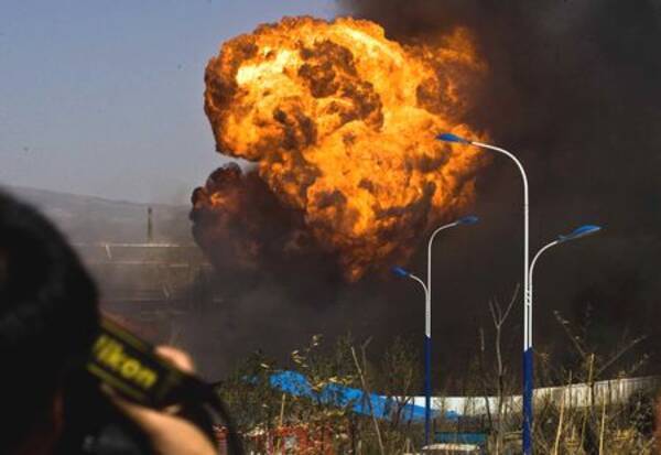 化学工場でエタノール10トン入りタンクが爆発炎上 雲南 2011年3月7日 エキサイトニュース